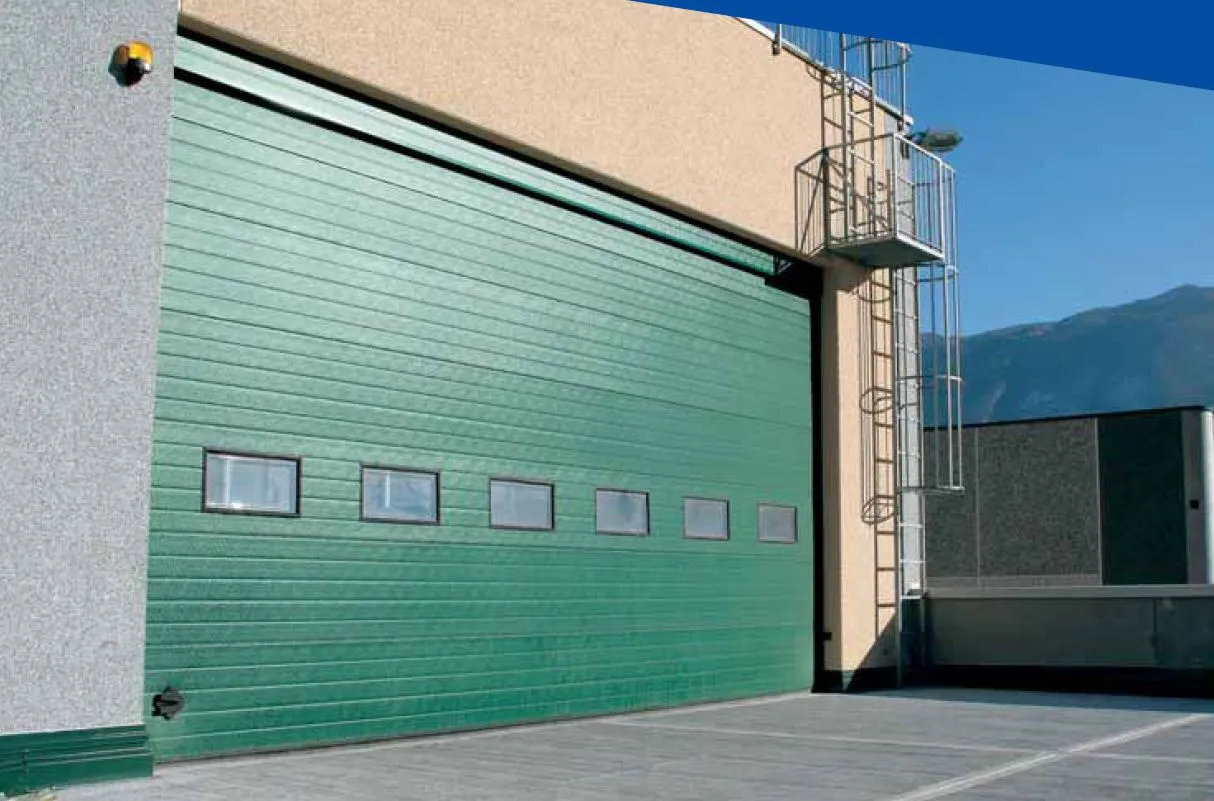 Il portone sezionale industriale che garantisce massima efficienza con ampie possibilità di personalizzazione: ampia scelta di colori e finiture, pannelli coibentati di spessore 42mm oppure 80mm, numerose tipologie di scorrimento, oblò e sezioni Full